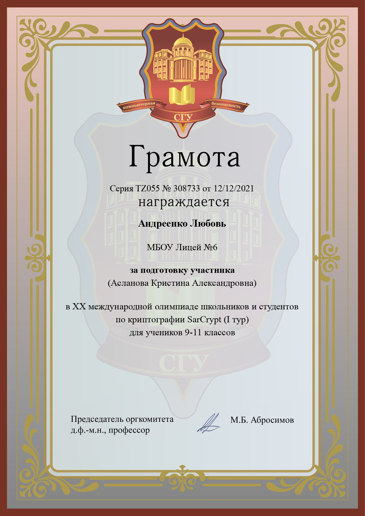 Название конкурса: XX открытая олимпиада школьников и студентов по криптографии (I тур)