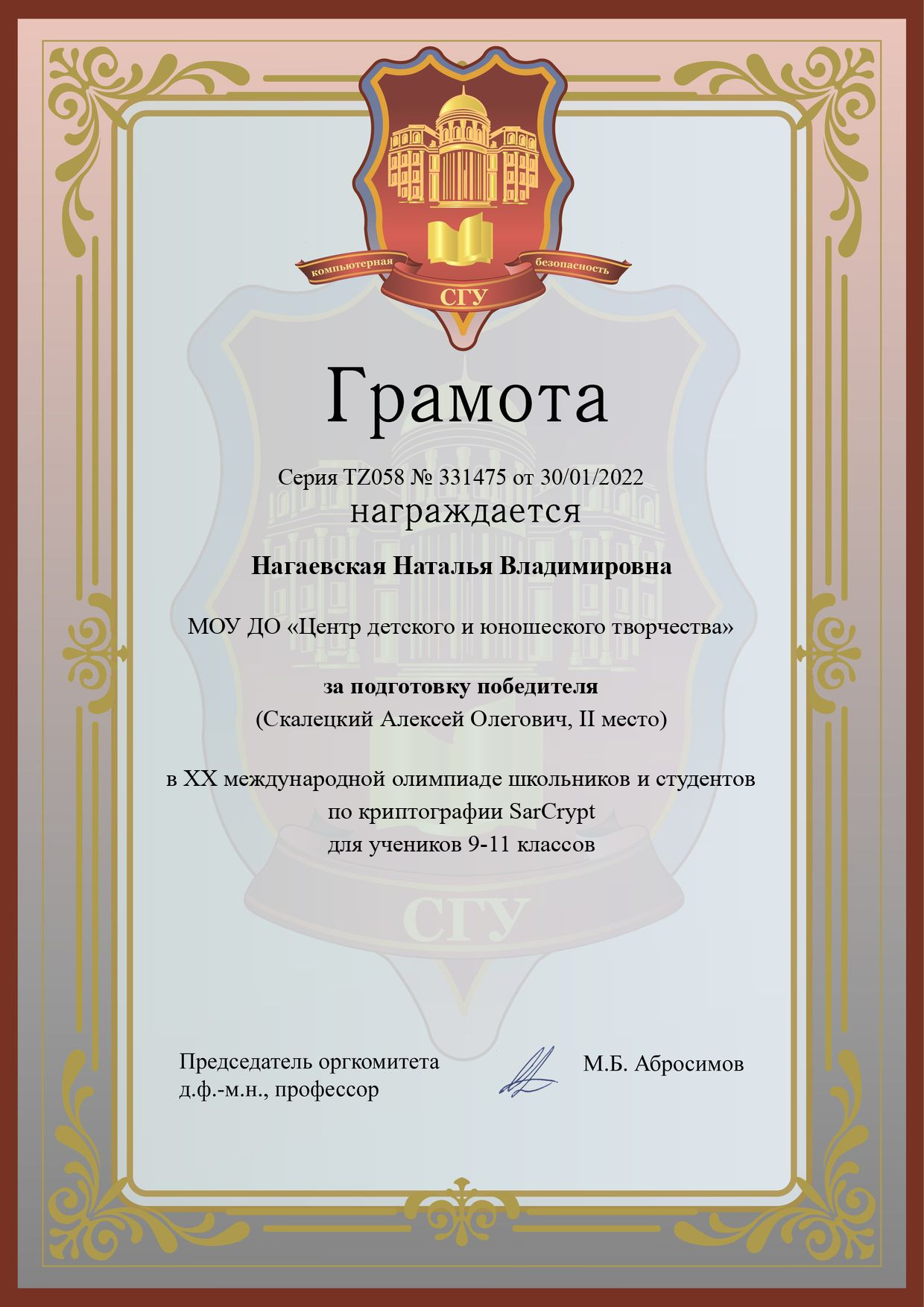 Название конкурса: XX открытая олимпиада школьников и студентов по криптографии (II тур)Участник: Скалецкий Алексей Олегович