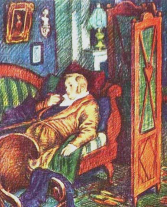 Вопрос № 1. Определите, к какому литературному произведению сделана данная иллюстрация, нарисована картина?
