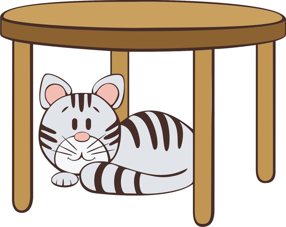 Вопрос № 1. Поставьте верный предлог в предложение:The cat is … the table.