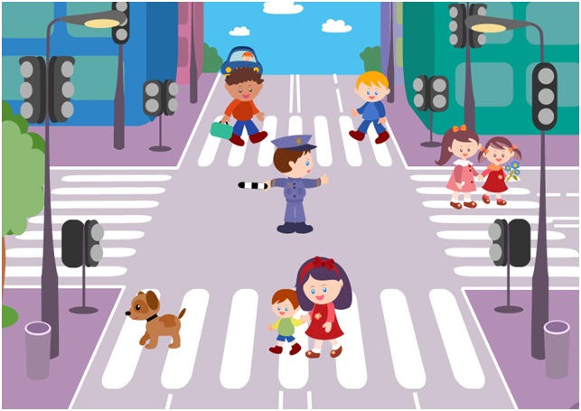 Вопрос № 1. На картинке изображена некоторая ситуация. Как пешеходам следует переходить проезжую часть?
