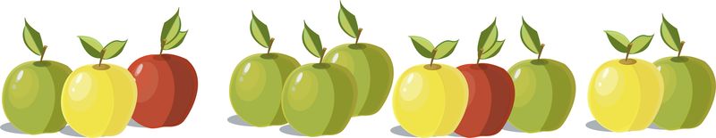 Вопрос № 1. Сколько яблок зеленого цвета на рисунке?