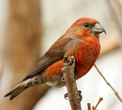 Вопрос № 1. Мелкая птица с толстым клювом, концы которого перекрещиваются. У взрослого самца голова, спина и нижняя сторона тела от малиново-красной до красно-оранжевой, крылья и хвост черновато-бурые, иногда с красноватым налётом. Широко распространена в хвойных лесах.
