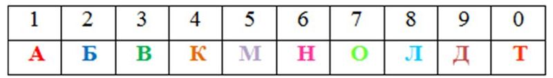 Вопрос № 1. Посмотрите на таблицу и расшифруйте слово: 4756101